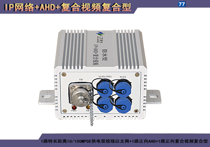 2路特長(cháng)距離10/100MPOE供電雙絞線以太網+2路正向(xiàng)AHD+2路正向(xiàng)複合視頻複合信号型光端機發(fā)射機/接收機,1/2/4/8擴容口可選,複合信号可選,單模/多模/塑料,1/2纖,ST/FC/SC/LC/SFP光接口,15/20/25/32dB,獨立/冗餘/總線供電(DC18~36V/5V),導軌,工業型,非網管/網管/帶光纖數字診斷網管 |