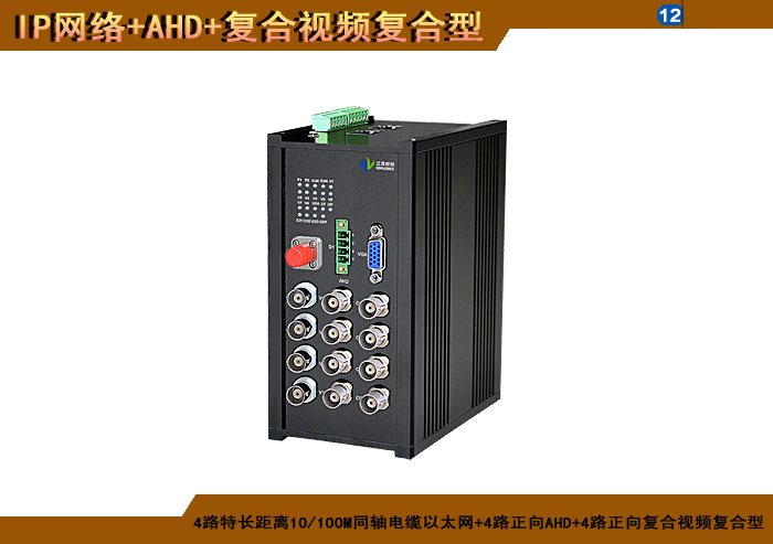 4路特長(cháng)距離10/100M同軸電纜以太網+4路正向(xiàng)AHD+4路正向(xiàng)複合視頻複合信号型光端機發(fā)射機/接收機,1/2/4/8擴容口可選,複合信号可選,單模/多模/塑料,1/2纖,ST/FC/SC/LC/SFP光接口,15/20/25/32dB,獨立/冗餘/總線供電(DC18~36V/5V),導軌,工業型,非網管/網管/帶光纖數字診斷網管 |