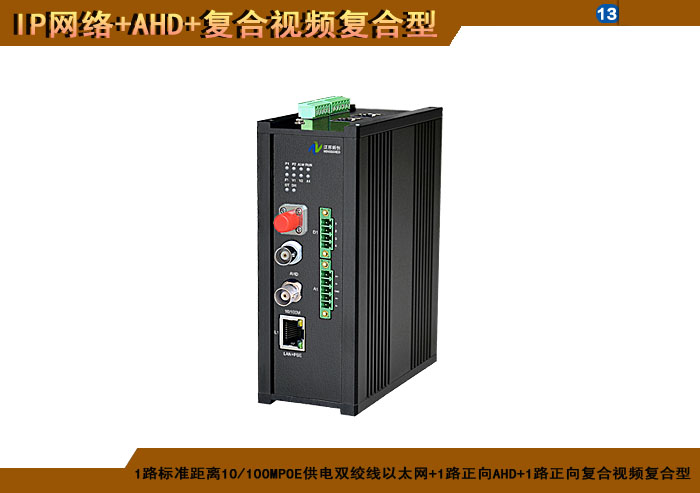 1路标準距離10/100MPOE供電雙絞線以太網+1路正向(xiàng)AHD+1路正向(xiàng)複合視頻複合信号型光端機發(fā)射機/接收機,1/2/4/8擴容口可選,複合信号可選,單模/多模/塑料,1/2纖,ST/FC/SC/LC/SFP光接口,15/20/25/32dB,獨立/冗餘/總線供電(DC18~36V/5V),導軌,工業型,非網管/網管/帶光纖數字診斷網管 |