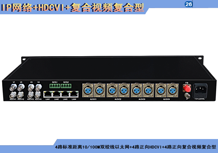 1/2/4路特長(cháng)距離10/100MPOE供電同軸電纜以太網+1/2/4路正向(xiàng)HDCVI+1/2/4路正向(xiàng)複合視頻複合信号型光端機發(fā)射機/接收機,複合信号可選,單模/多模/塑料,1/2纖,獨立/冗餘供電,機架,高可靠型 |