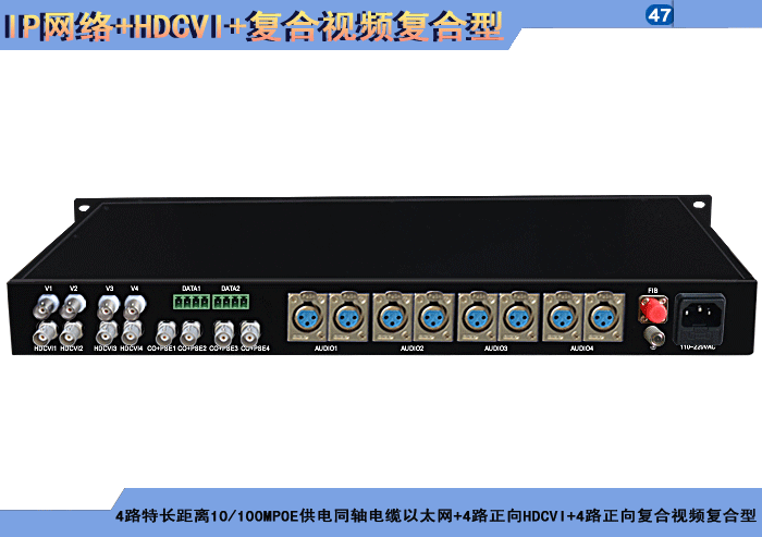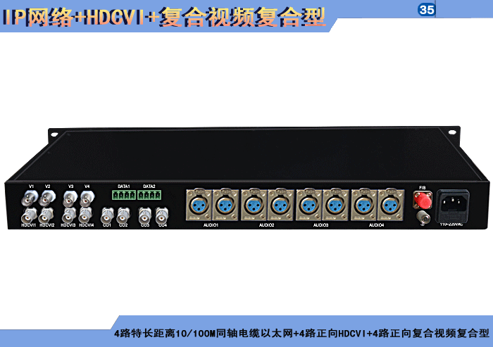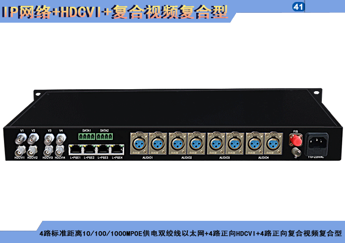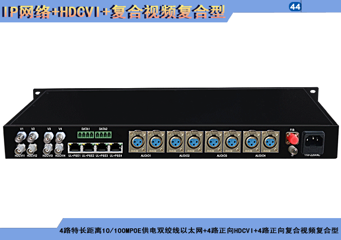1/2/4路特長(cháng)距離10/100MPOE供電同軸電纜以太網+1/2/4路正向(xiàng)HDCVI+1/2/4路正向(xiàng)複合視頻複合信号型光端機發(fā)射機/接收機,複合信号可選,單模/多模/塑料,1/2纖,獨立/冗餘供電,機架,防水型 |