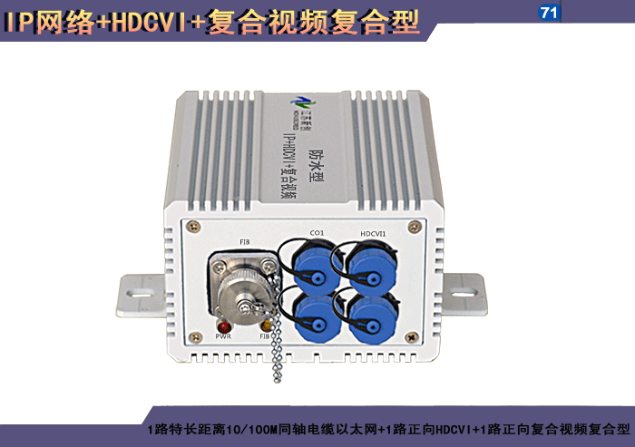 1/2/4路标準距離10/100M雙絞線以太網+1/2/4路正向(xiàng)HDCVI+1/2/4路正向(xiàng)複合視頻複合信号型光端機發(fā)射機/接收機,複合信号可選,單模/多模/塑料,1/2纖,獨立/冗餘供電,壁挂,防水型 |