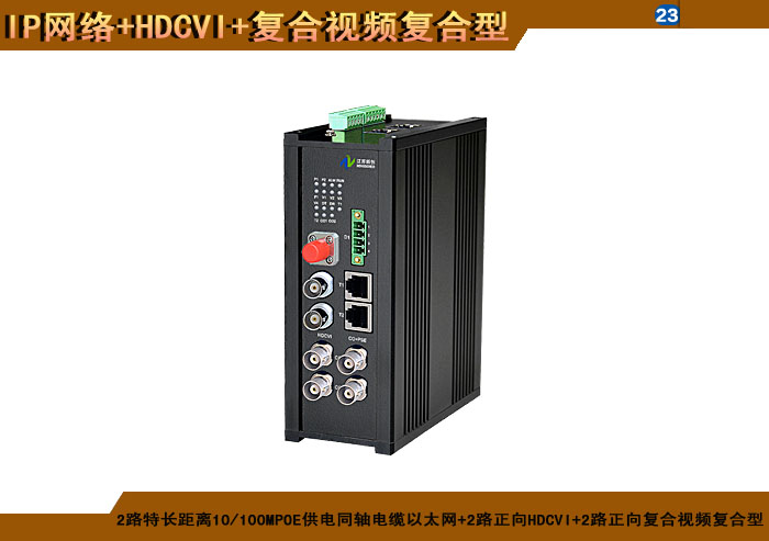 2路标準距離10/100M雙絞線以太網+2路正向(xiàng)HDCVI+2路正向(xiàng)複合視頻複合信号型光端機發(fā)射機/接收機,1/2/4/8擴容口可選,複合信号可選,單模/多模/塑料,1/2纖,ST/FC/SC/LC/SFP光接口,15/20/25/32dB,獨立/冗餘/總線供電(DC18~36V/5V),導軌,工業型,非網管/網管/帶光纖數字診斷網管 |