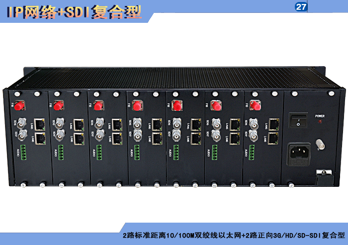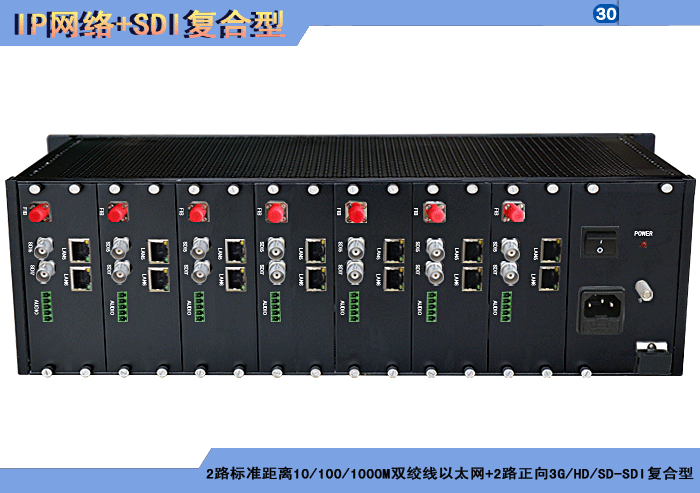 1/2/4路标準距離10/100/1000M雙絞線以太網+1/2/4路正向(xiàng)3G/HD/SD-SDI複合信号型光端機發(fā)射機/接收機,複合信号可選,單模/多模/塑料,1/2纖,ST/FC/SC/LC/SFP光接口,15/20/25/32dB,獨立/冗餘供電,插卡,通用型 |