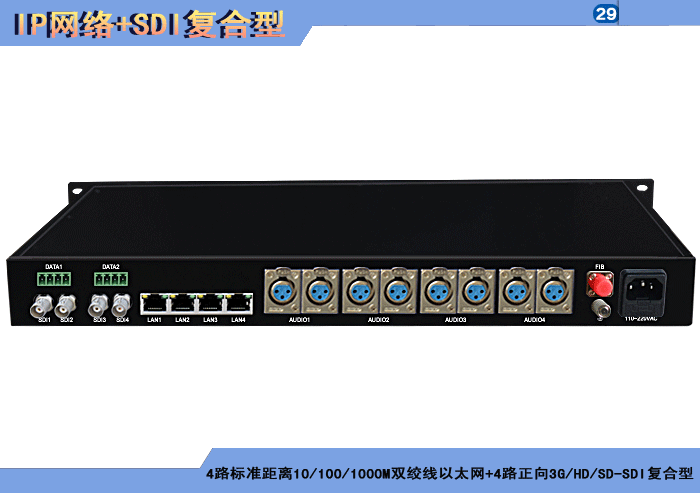 1/2/4路标準距離10/100M雙絞線以太網+1/2/4路正向(xiàng)3G/HD/SD-SDI複合信号型光端機發(fā)射機/接收機,複合信号可選,單模/多模/塑料,1/2纖,獨立/冗餘供電,機架,防水型 |