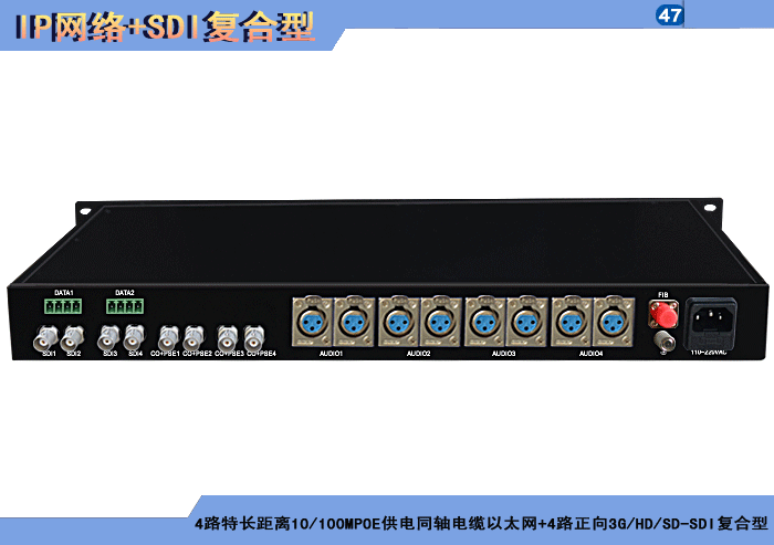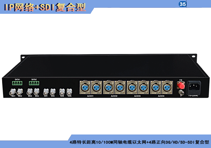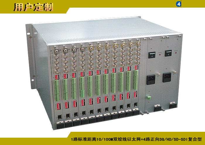 1/2/4路特長(cháng)距離10/100M雙絞線以太網+1/2/4路正向(xiàng)3G/HD/SD-SDI複合信号型光端機發(fā)射機/接收機,複合信号可選,單模/多模/塑料,1/2纖,獨立/冗餘供電,機架,防水型 |