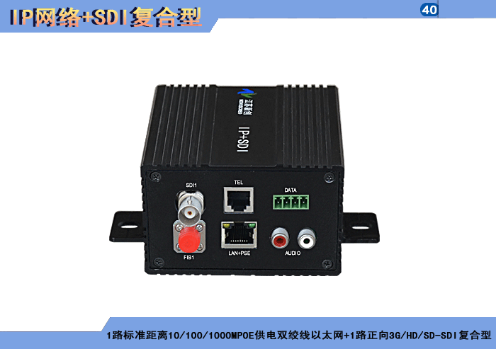 1/2/4路标準距離10/100/1000MPOE供電雙絞線以太網+1/2/4路正向(xiàng)3G/HD/SD-SDI複合信号型光端機發(fā)射機/接收機,複合信号可選,單模/多模/塑料,1/2纖,ST/FC/SC/LC/SFP光接口,15/20/25/32dB,獨立/冗餘供電,壁挂,通用型 |