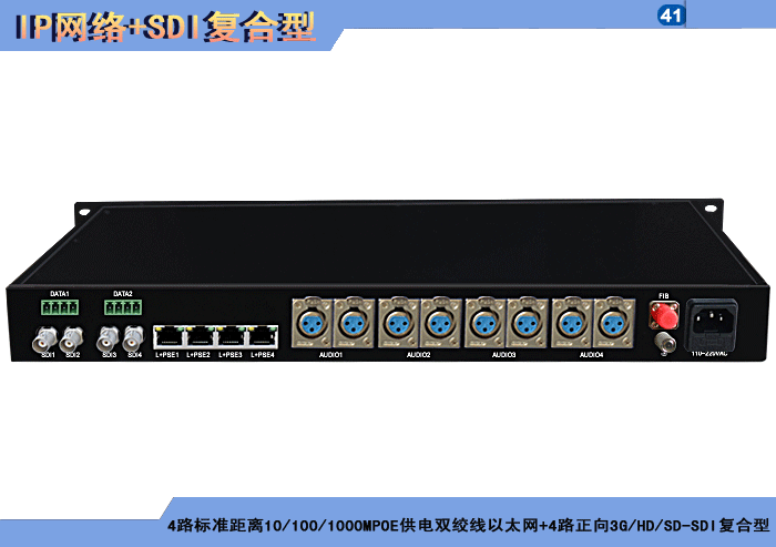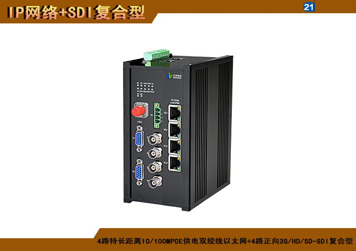 1/2/4路标準距離10/100MPOE供電雙絞線以太網+1/2/4路正向(xiàng)3G/HD/SD-SDI複合信号型光端機發(fā)射機/接收機,複合信号可選,單模/多模/塑料,1/2纖,獨立/冗餘供電,壁挂,防水型 |