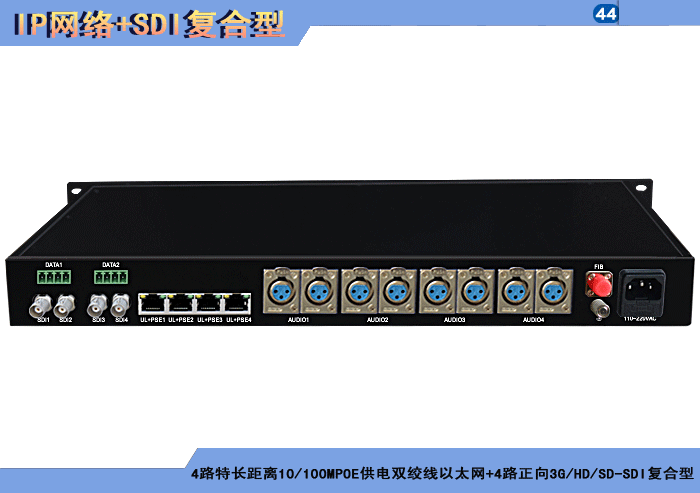 1/2/4路特長(cháng)距離10/100MPOE供電雙絞線以太網+1/2/4路正向(xiàng)3G/HD/SD-SDI複合信号型光端機發(fā)射機/接收機,複合信号可選,單模/多模/塑料,1/2纖,獨立/冗餘供電,機架,高可靠型 |