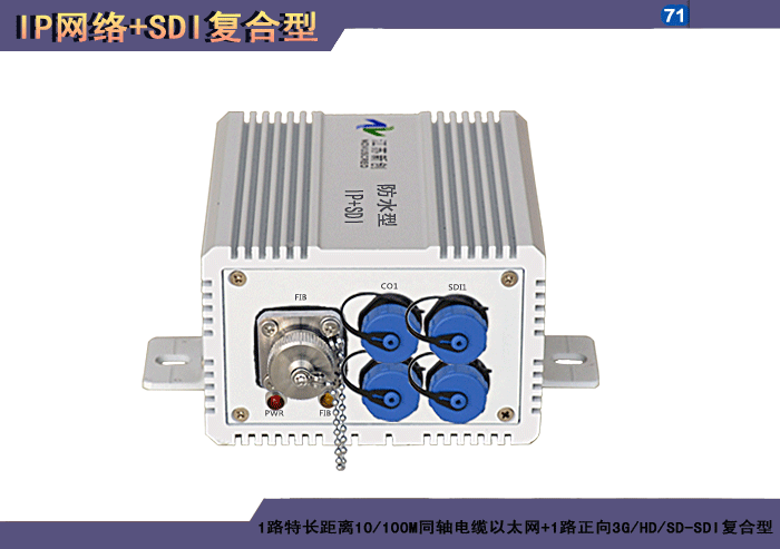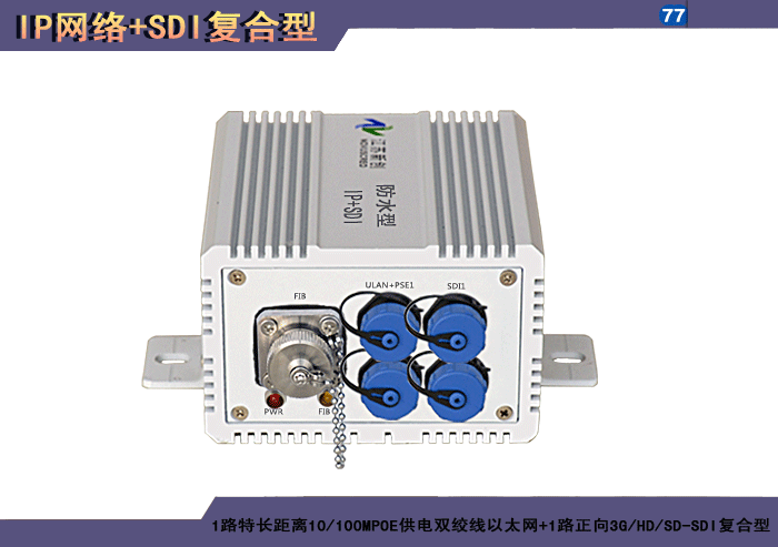 1/2/4路特長(cháng)距離10/100M雙絞線以太網+1/2/4路正向(xiàng)3G/HD/SD-SDI複合信号型光端機發(fā)射機/接收機,複合信号可選,單模/多模/塑料,1/2纖,獨立/冗餘供電,壁挂,防水型 |