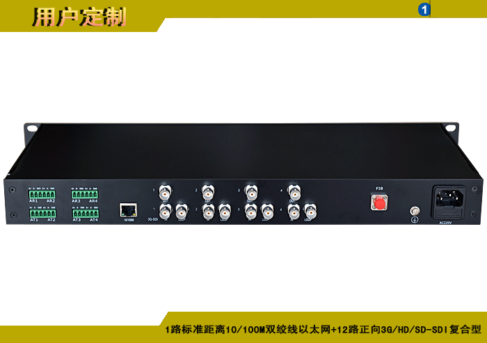 1/2/4路标準距離10/100/1000M雙絞線以太網+1/2/4路正向(xiàng)3G/HD/SD-SDI複合信号型光端機發(fā)射機/接收機,複合信号可選,單模/多模/塑料,1/2纖,獨立/冗餘供電,機架,防水型 |