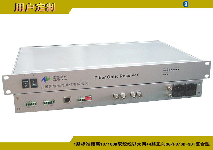 1/2/4路标準距離10/100M雙絞線以太網+1/2/4路正向(xiàng)3G/HD/SD-SDI複合信号型光端機發(fā)射機/接收機,複合信号可選,單模/多模/塑料,1/2纖,ST/FC/SC/LC/SFP光接口,15/20/25/32dB,獨立/冗餘供電,機架,通用型 |
