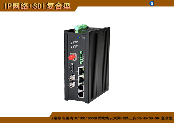 2路标準距離10/100/1000M雙絞線以太網+2路正向(xiàng)3G/HD/SD-SDI複合信号型光端機發(fā)射機/接收機,1/2/4/8擴容口可選,複合信号可選,單模/多模/塑料,1/2纖,ST/FC/SC/LC/SFP光接口,15/20/25/32dB,獨立/冗餘/總線供電(DC18~36V/5V),導軌,工業型,非網管/網管/帶光纖數字診斷網管 |