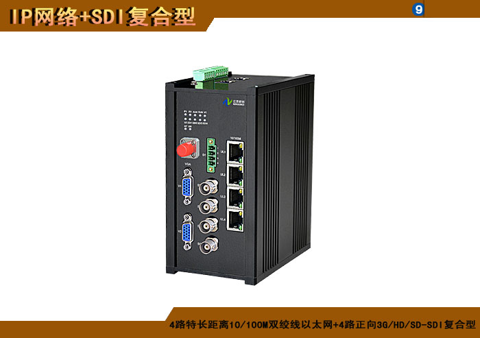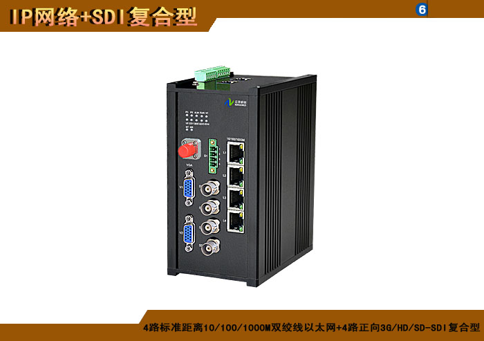 4路标準距離10/100/1000M雙絞線以太網+4路正向(xiàng)3G/HD/SD-SDI複合信号型光端機發(fā)射機/接收機,1/2/4/8擴容口可選,複合信号可選,單模/多模/塑料,1/2纖,ST/FC/SC/LC/SFP光接口,15/20/25/32dB,獨立/冗餘/總線供電(DC18~36V/5V),導軌,工業型,非網管/網管/帶光纖數字診斷網管 |