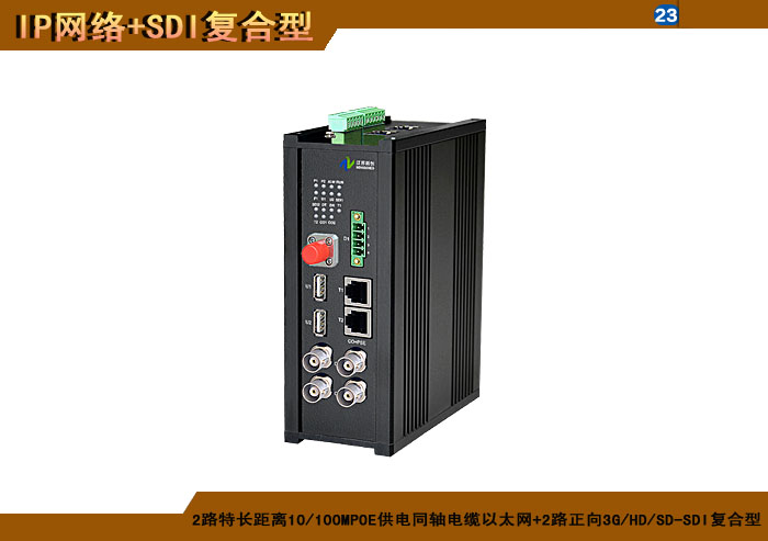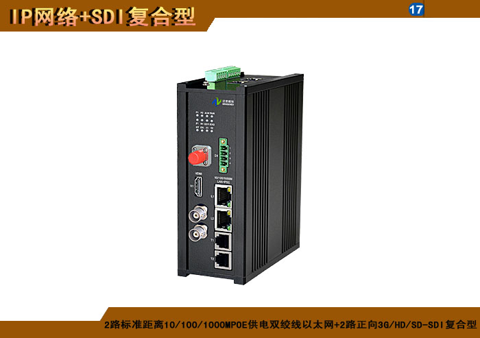 2路标準距離10/100/1000MPOE供電雙絞線以太網+2路正向(xiàng)3G/HD/SD-SDI複合信号型光端機發(fā)射機/接收機,1/2/4/8擴容口可選,複合信号可選,單模/多模/塑料,1/2纖,ST/FC/SC/LC/SFP光接口,15/20/25/32dB,獨立/冗餘/總線供電(DC18~36V/5V),導軌,工業型,非網管/網管/帶光纖數字診斷網管 |