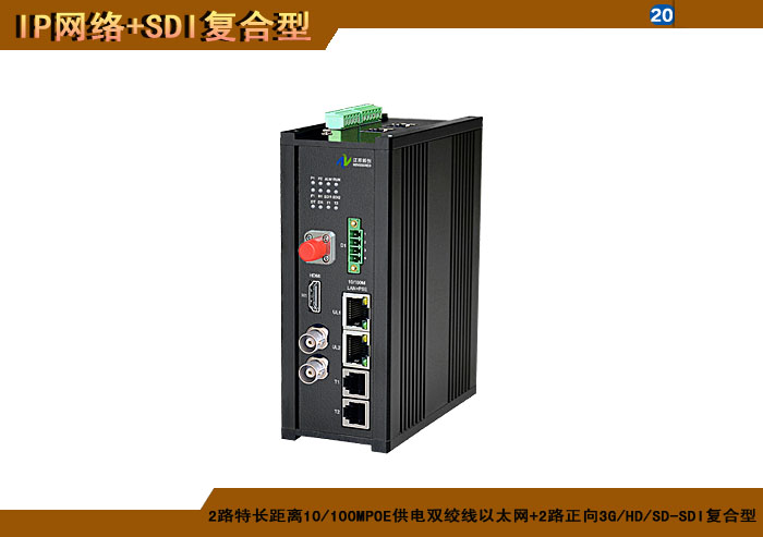 1/2/4路特長(cháng)距離10/100MPOE供電雙絞線以太網+1/2/4路正向(xiàng)3G/HD/SD-SDI複合信号型光端機發(fā)射機/接收機,複合信号可選,單模/多模/塑料,1/2纖,獨立/冗餘供電,壁挂,防水型 |