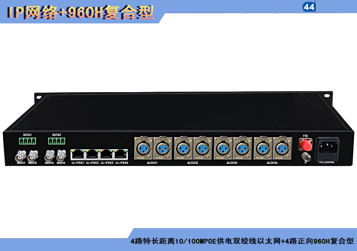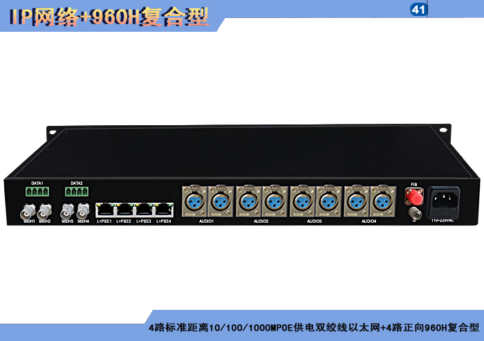 1/2/4路特長(cháng)距離10/100MPOE供電雙絞線以太網+1/2/4路正向(xiàng)960H複合信号型光端機發(fā)射機/接收機,複合信号可選,單模/多模/塑料,1/2纖,獨立/冗餘供電,壁挂,高可靠型 |