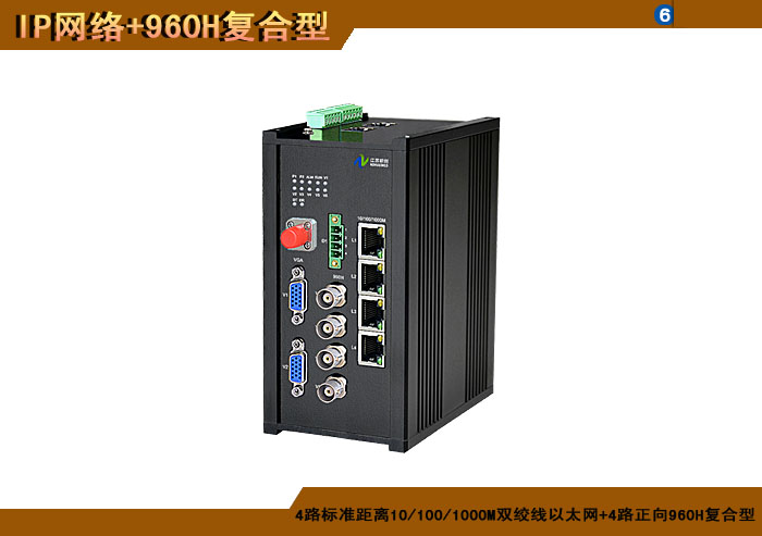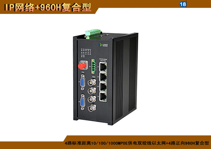 4路特長(cháng)距離10/100MPOE供電雙絞線以太網+4路正向(xiàng)960H複合信号型光端機發(fā)射機/接收機,1/2/4/8擴容口可選,複合信号可選,單模/多模/塑料,1/2纖,ST/FC/SC/LC/SFP光接口,15/20/25/32dB,獨立/冗餘/總線供電(DC18~36V/5V),導軌,工業型,非網管/網管/帶光纖數字診斷網管 |