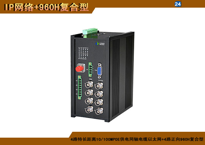 1/2/4路特長(cháng)距離10/100MPOE供電雙絞線以太網+1/2/4路正向(xiàng)960H複合信号型光端機發(fā)射機/接收機,複合信号可選,單模/多模/塑料,1/2纖,獨立/冗餘供電,壁挂,防水型 |