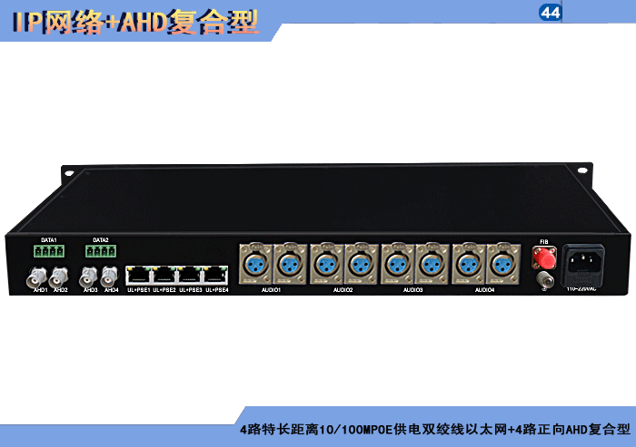 1/2/4路特長(cháng)距離10/100MPOE供電雙絞線以太網+1/2/4路正向(xiàng)AHD複合信号型光端機發(fā)射機/接收機,複合信号可選,單模/多模/塑料,1/2纖,獨立/冗餘供電,機架,防水型 |