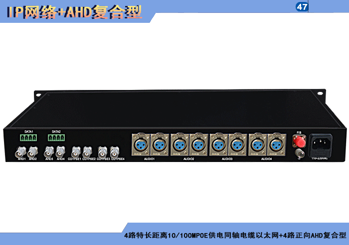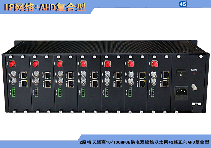 1/2/4路标準距離10/100MPOE供電雙絞線以太網+1/2/4路正向(xiàng)AHD複合信号型光端機發(fā)射機/接收機,複合信号可選,單模/多模/塑料,1/2纖,獨立/冗餘供電,機架,防水型 |