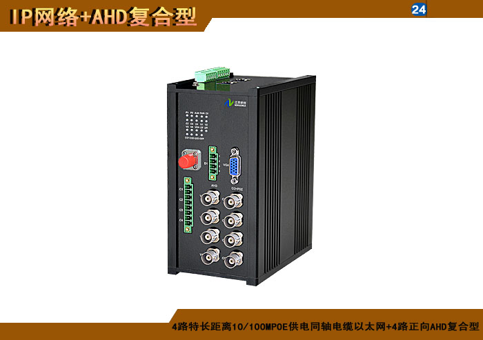1/2/4路特長(cháng)距離10/100MPOE供電雙絞線以太網+1/2/4路正向(xiàng)AHD複合信号型光端機發(fā)射機/接收機,複合信号可選,單模/多模/塑料,1/2纖,獨立/冗餘供電,壁挂,高可靠型 |