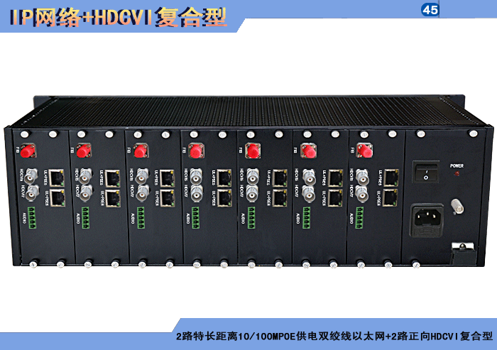 1/2/4路特長(cháng)距離10/100MPOE供電同軸電纜以太網+1/2/4路正向(xiàng)HDCVI複合信号型光端機發(fā)射機/接收機,複合信号可選,單模/多模/塑料,1/2纖,獨立/冗餘供電,機架,高可靠型 |