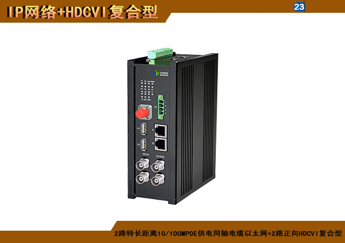 2路标準距離10/100MPOE供電雙絞線以太網+2路正向(xiàng)HDCVI複合信号型光端機發(fā)射機/接收機,1/2/4/8擴容口可選,複合信号可選,單模/多模/塑料,1/2纖,ST/FC/SC/LC/SFP光接口,15/20/25/32dB,獨立/冗餘/總線供電(DC18~36V/5V),導軌,工業型,非網管/網管/帶光纖數字診斷網管 |