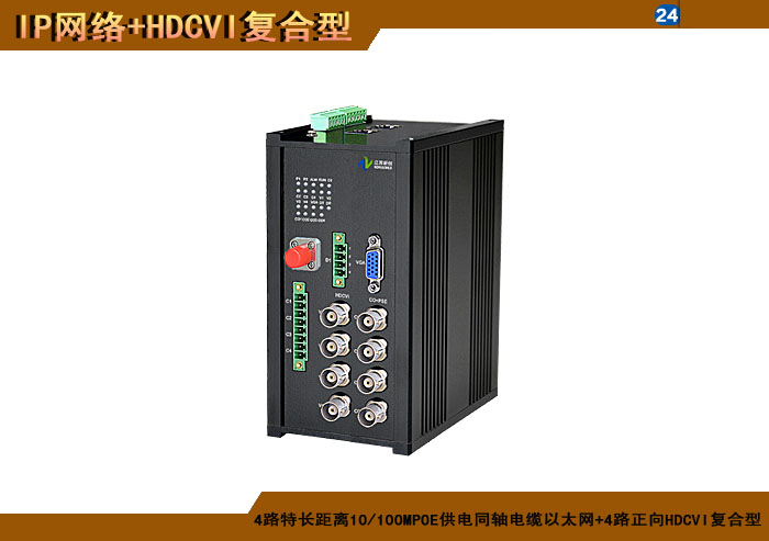 1/2/4路标準距離10/100MPOE供電雙絞線以太網+1/2/4路正向(xiàng)HDCVI複合信号型光端機發(fā)射機/接收機,複合信号可選,單模/多模/塑料,1/2纖,獨立/冗餘供電,機架,高可靠型 |